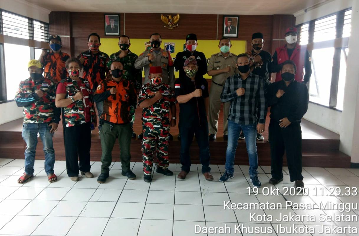 JAKARTA – Tiga Pilar Kecamatan Pasar Minggu menggelar rapat koordinasi antisipasi gangguan kamtibmas di wilayah hukum polsek Pasar Minggu terkait rencana aksi unjuk rasa menolak UU Cipta Kerja.