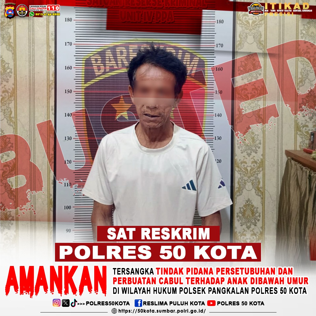 Bejat! Pria 71 Tahun Diduga Setubuhi Anak, Ditangkap Polres 50 Kota.