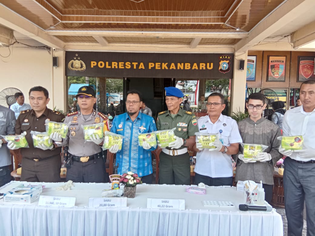 Sebelum Acara pemusnahan Barang bukti Narkotika Jenis sabu dilaksanakan Kapolresta Pekanbaru Kombes Pol Susanto Sik SH MH menyampaikan, pemusnahan barang bukti Narkotika sudah sering kita lakukan.