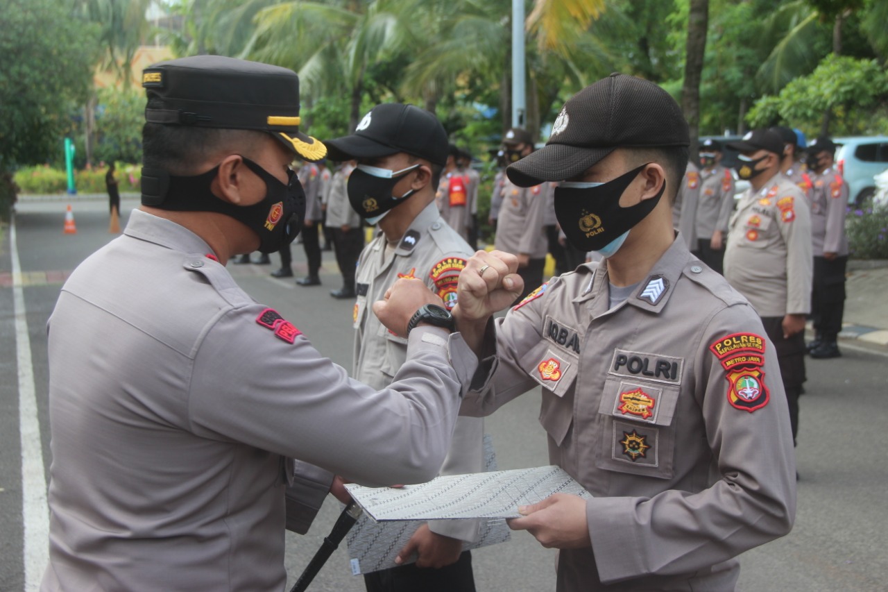 Jakarta – Kepala Kepolisian Resor (Kapolres) Kepulauan Seribu AKBP Morry Ermond, S.I.K., M.T. memberikan penghargaan kepada anggotanya yang berprestasi di Halaman Kantor Polres Kepulauan Seribu, Senin (28/12/2020).