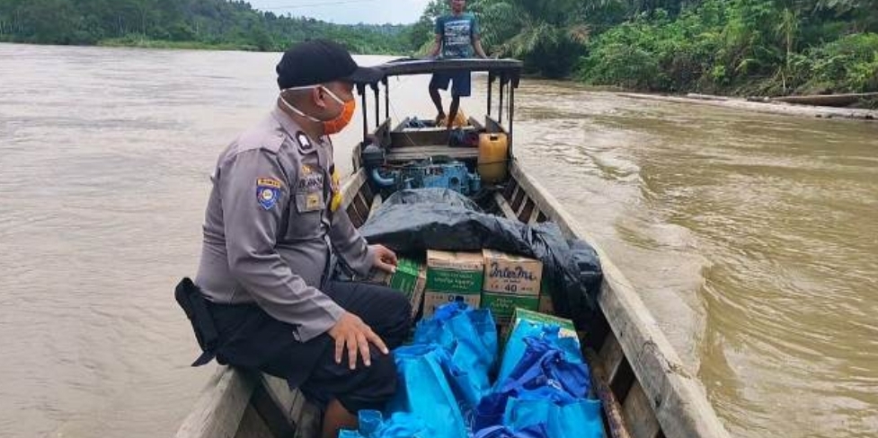 ACEH TIMUR, mediapolisi.com – Dengan menggunakan sarana transportasi perahu kayu, Bhabinkamtibmas Polsek Simpang Jernih bersama unsur muspika setempat pada Selasa, (28/04/2020) siang melaksanakan kegiatan Penyaluran/Pendistribusian Bantuan Sosial APBA (Anggaran Pendapatan Belanja Aceh) kepada masyarakat atau warga miskin/tidak mampu yang terdampak oleh Virus Covid-19.
