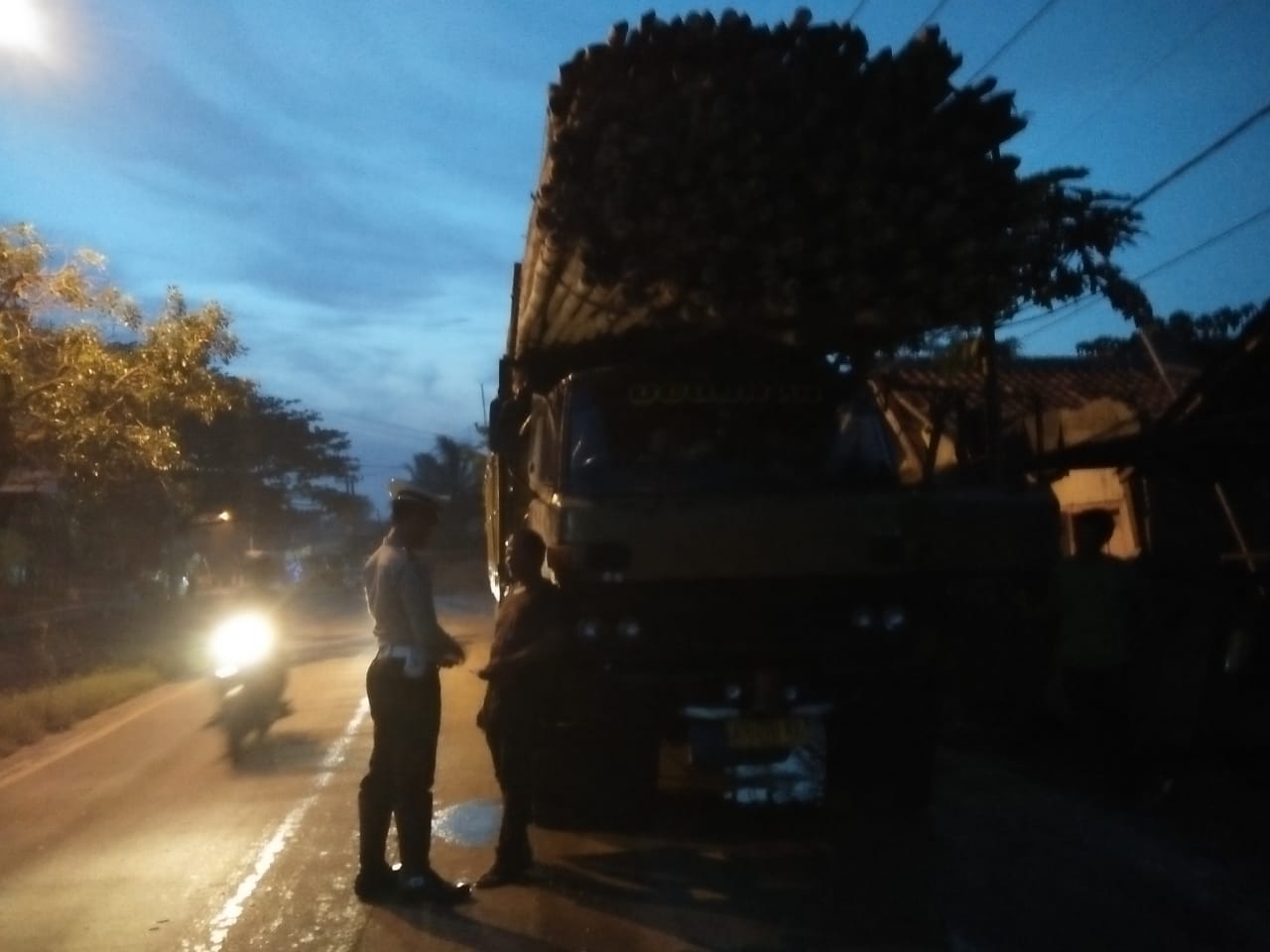 “Kita dari Pajagan bawa bambu untuk dikirim ke Jakarta, karena terlalu banyak muatannya makanya kena tilang”terangnya.