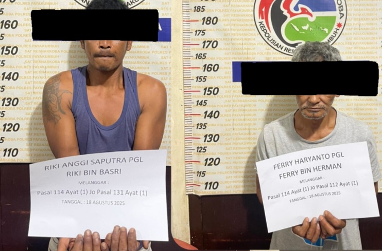 Dua tersangka FH (51) san RS (37) ditangkap pihak kepolisian di sekitaran Jl Ahmad Yani Kelurahan Nunang Daya Bangun tepatnya di bawah kanopi pusat kuliner Kota Payakumbuh, Senin (18/8) malam.