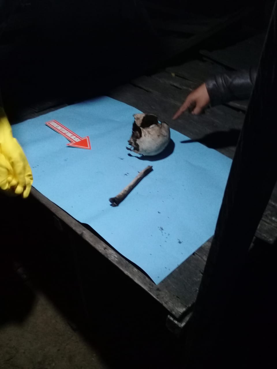 “Waktu itu, saya hendak melintas kesungai dan melihat potongan tengkorak manusia. Saya awalnya sempat kaget kemudian langsug saya bawa ke depan rumah dan menghubungi pihak kepolisian,” terang Humaidi.