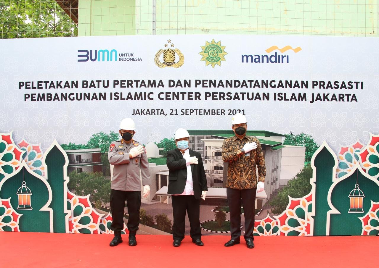 Jakarta – Kapolri Jenderal Listyo Sigit Prabowo menghadiri acara peletakan batu pertama pembangunan Islamic Center Persatuan Islam (PERSIS) DKI Jakarta di Jalan Bambu Apus, Cipayung, Jakarta Timur, Selasa (21/9/2021).