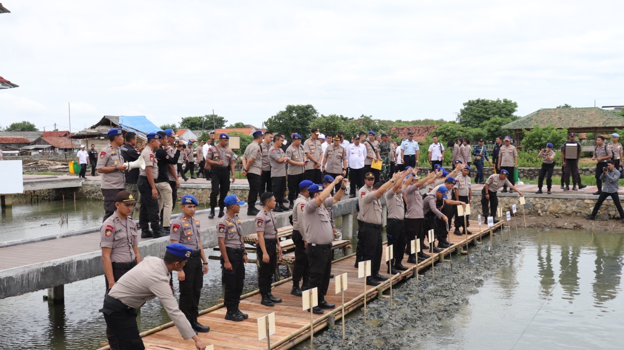 TANGERANG, mediapolisi.com – Kabaharkam Polri Komjen pol Drs Agus Andrianto,SH, MH didampingi oleh Kakor Polairud Irjen Pol Drs Lotharia Latif ,SH,M.Hum dan Waka Polda Banten Drs Tomex Korniawan serta PJU Polda Banten mengecek kesiapan lokasi acara penanaman pohon mangrove di Kp Pelelangan Desa Ketapang Kec Mauk Kab Tangerang,Rabu (19/02).