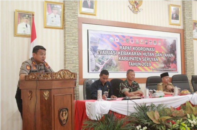 SERUYAN, mediapolisi.com – Kapolres Seruyan AKBP Agung Tri Widiantoro, S.I.K., M.H menghadiri Rapat Koordinasi (Rakor) evaluasi penanganan Karhutla di wilayah Kabupaten Seruyan Tahun 2019 dan strategi pencegahan, kesiapsiagaan dan penanganan darurat bencana Karhutla tahun 2020.