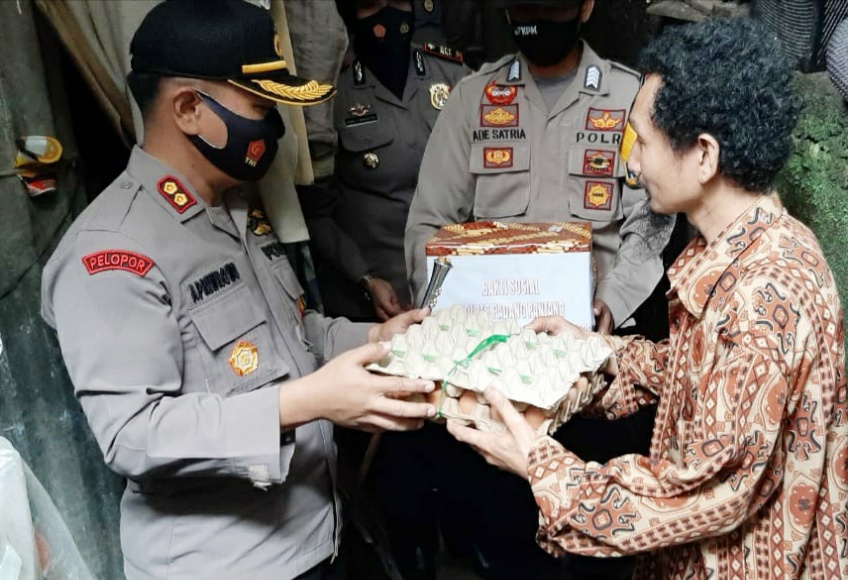 Penyerahan bantuan bagi warga yang berada di lingkungan Polres Padang Panjang dilakukan sendiri oleh AKBP Apri Wibowo di halaman depan Mapolres, Rabu (19/8).