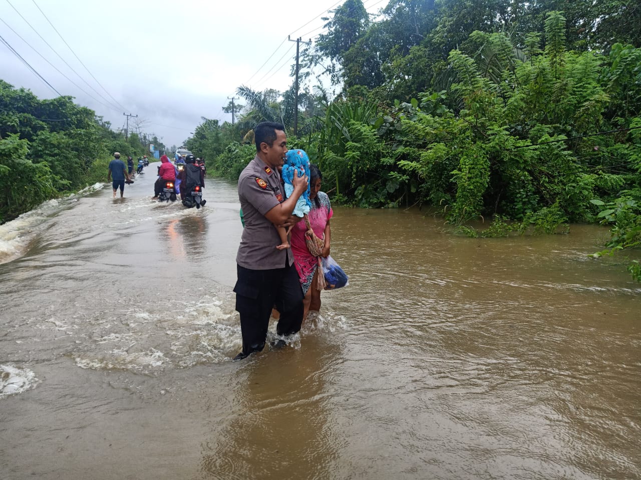 “Guna pengamanan jalan yang terendam banjir telah kita beri portal,dan juga demi kelancaran lalulintas telah di atur oleh personil Polsek,” tambah Kapolsek