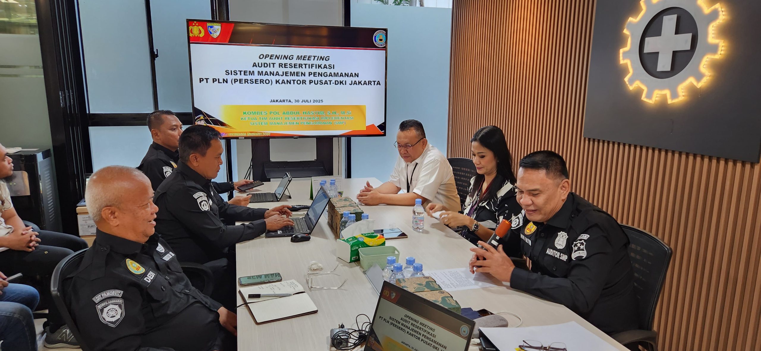 Jakarta—Tim audit resertifikasi Sistem Manajemen Pengamanan (SMP) PT PLN Pusat Jakarta telah merampungkan kegiatan hari pertama. Peninjauan ini berlangsung di ruang rapat lantai 1 Gedung Utama Kantor PT PLN Pusat, Divisi HSSE, pada Rabu, 30 Juli 2025.