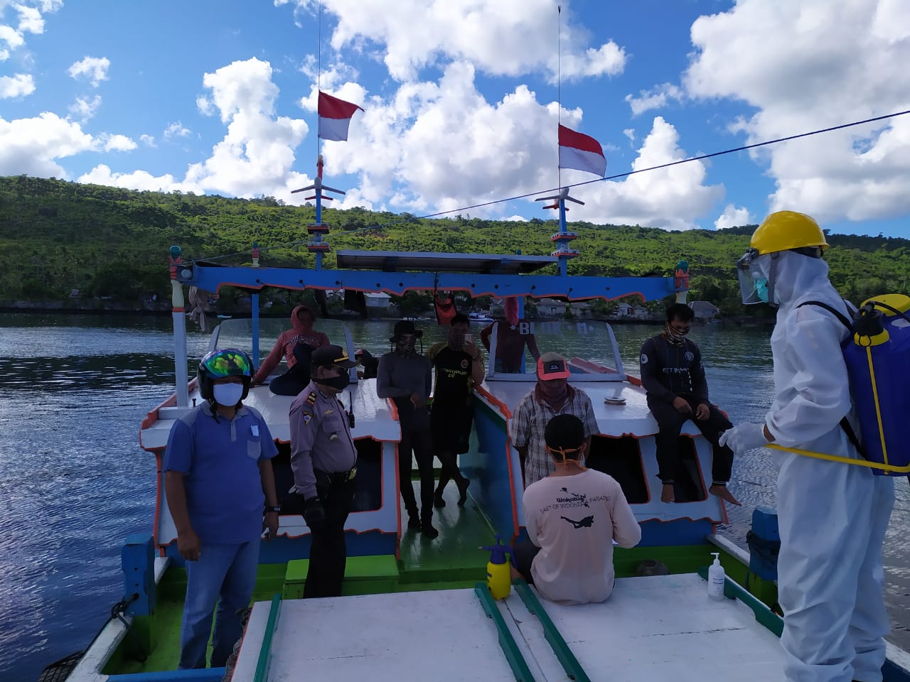 BINONGKO, mediapolisi.com – Guna memutuskan rantai penyebaran virus Corona (Covid19) Polsek Binongko dan UPTD Perikanan serta petugas Puskesmas Taipabu. Melaksanakan kegiatan tindakan pencegahan penyebaran covid-19, terhadap kapal penampung ikan yang datang dari luar Binongko, Jumat (01/05/2020)