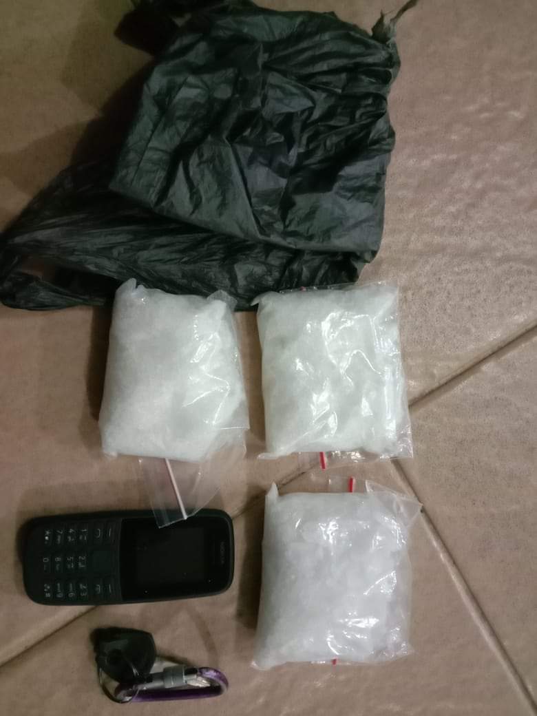 “Saat kita lakukan penggeledahan badan, kita temukan bungkusan plastik warna hitam berisi sabu,” tuturnya.