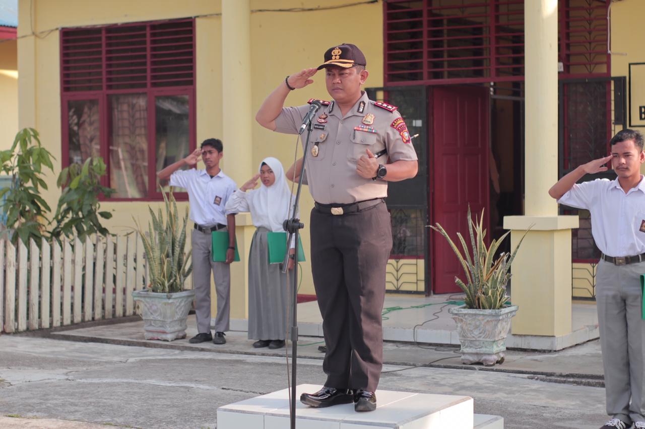 Kapolres Kepulauan Meranti AKBP Taufiq Lukman Nurhidayat, SIK MH juga menyampaikan Sosialisasi lalu lintas dan informasi tentang pendaftaran polisi apabila siswa dan siswi ingin mendaftar.
