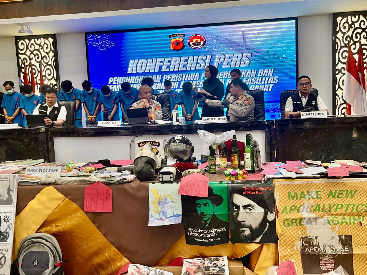 “Barang bukti yang diamankan antara lain puluhan bom molotov siap pakai, bahan peledak rakitan, ratusan buku dan artikel bermuatan ideologi anarkis, hingga perangkat elektronik yang digunakan untuk menyebarkan konten provokatif,” tambahnya.