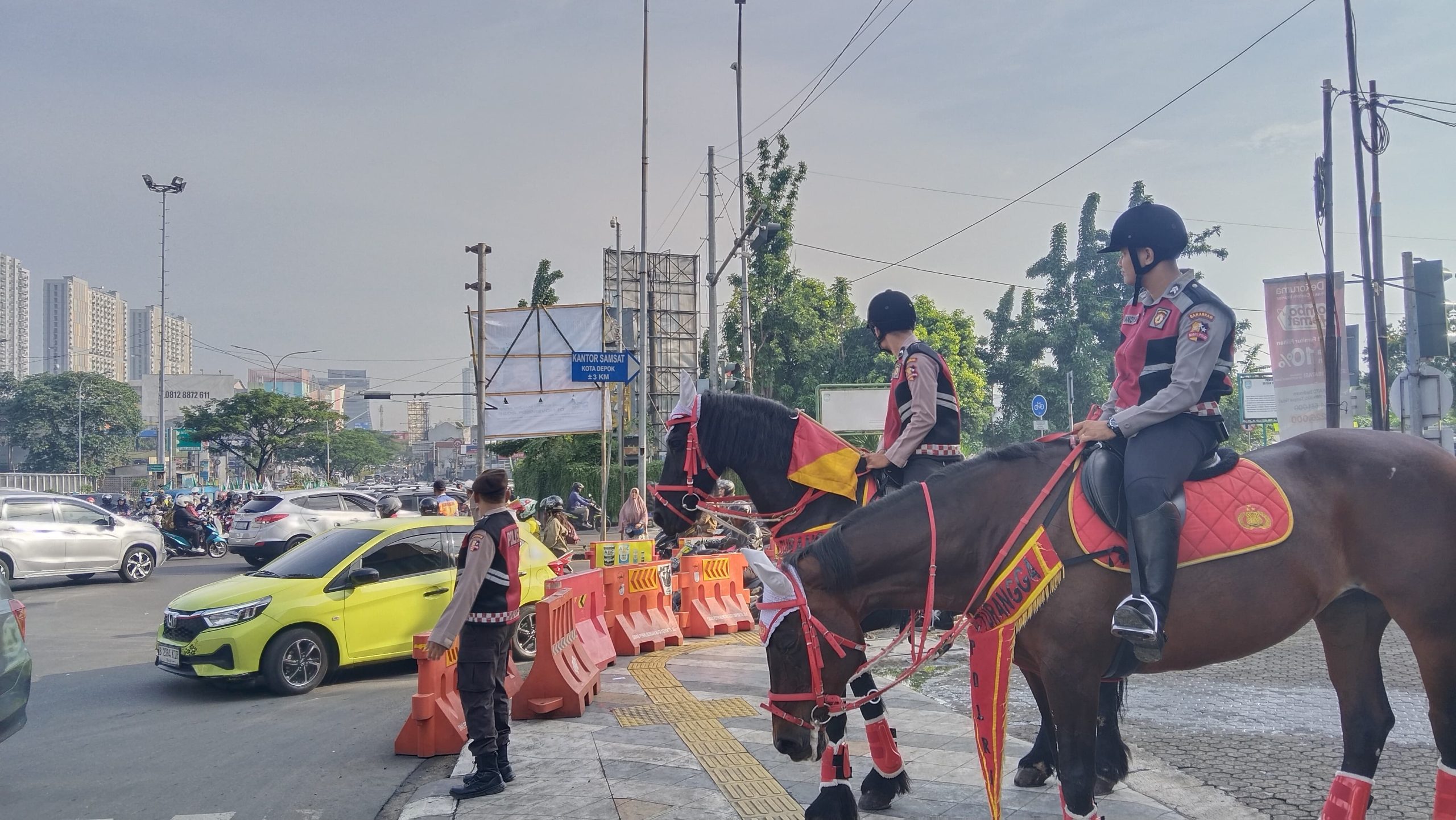 Polisi Berkuda Turangga Korsabhara Baharkam Polri, Atur Lalin dan Patroli Humanis di Margonda Depok.