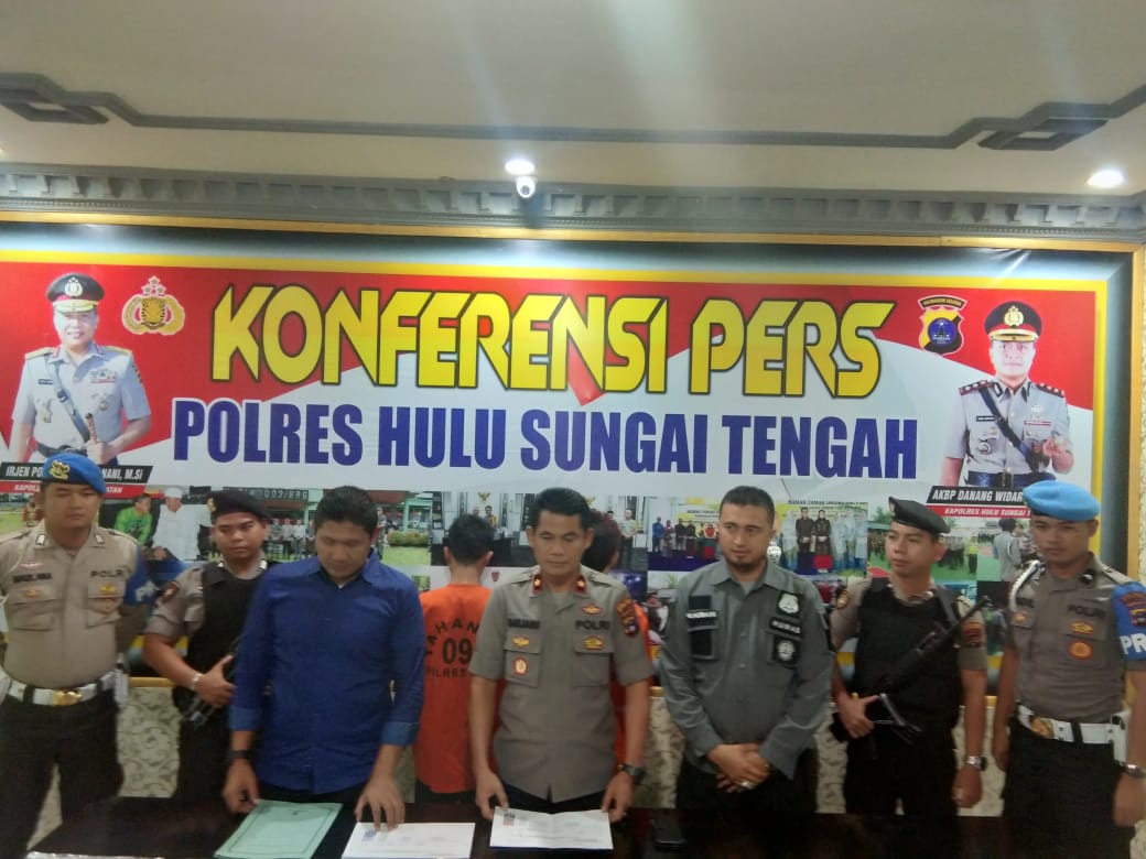 Konferensi Pers dilakukan sekitar pukul 11.00 Wita dengan mengundang wartawan media cetak maupun online yang ada di Kab.HST. Kapolres HST AKBP Danang Widaryanto, S.I.K., yang diwakili Waka Polres Kompol Sarjaini serta didampingi Kasat Reskrim AKP Dany Sulistiono, S.Sos, M.M, Ps. Paur Subag Humas Aipda M. Husaini, S.E, M.M., Anggota Sat Reskrim, Sat Sabhara dan Si Propam