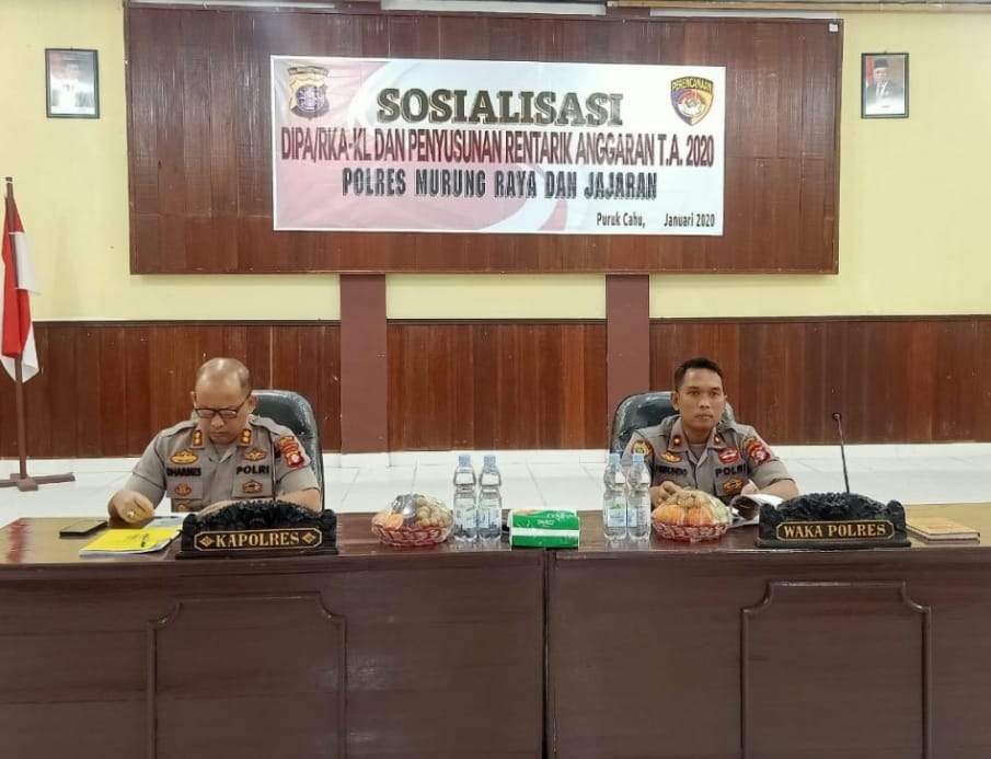 Puruk Cahu, mediapolisi.com – Pada hari Selasa Pagi (07/01/2020) sekitar pukul 09.00 diadakan pertemuan internal di Kepolisian Resor Murung Raya (Mura). Pertemuan itu adalah gelar sosialisasi DIPA/RKA-KL dan Penyusunan Rentarik Tahun Anggaran 2020, yang diadakan di aula Mapolres.