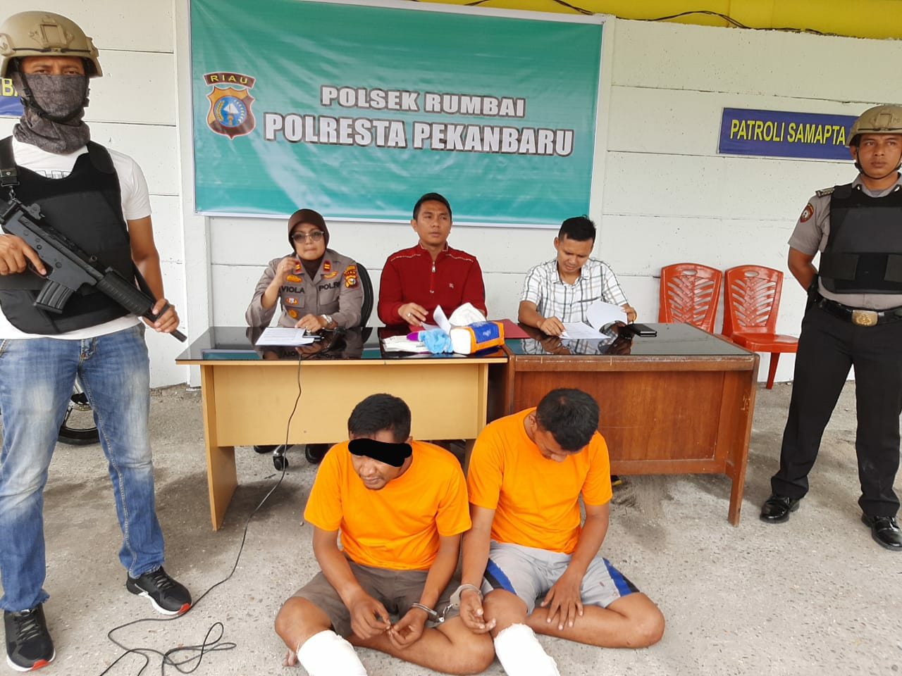 PEKANBARU, mediapolisi.com – Kapolresta Pekanbaru AKBP H. Nandang Mu’min Wijaya, SIK, MH yang diwakili Kasat Reskrim AKP Awaludin Syam, SIK serta didampingi Kapolsek Rumbai IPDA Biola Dwi Annreni, SIK dan IPDA Lukman, SH adakan Konferensi Pers terkait penangkapan kasus pencurian dengan pemberatan (Curat) serta Curanmor. Sabtu (28/12)