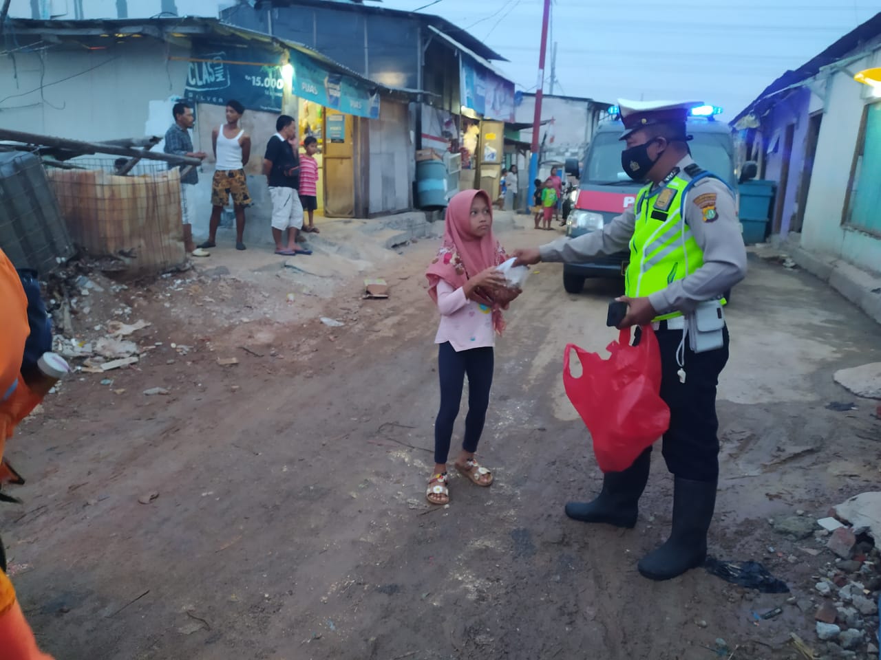 Jakarta – Polsek Kawasan Sunda Kelapa bekerja sama dengan donatur dan dapur umum bhayangkari bareskrim polri membagikan 250 bungkus makanan siap saji kepada para buruh dan nelayan di kaliadem Muara Angke, Jakarta Utara.