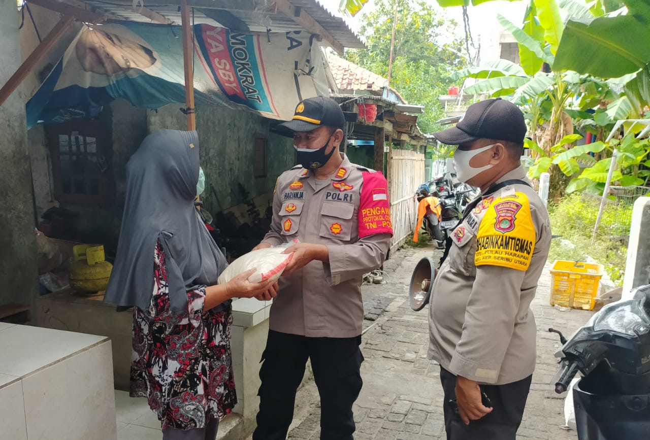Polsek Kep Seribu Utara Bagikan Sembako Secara Door To Door