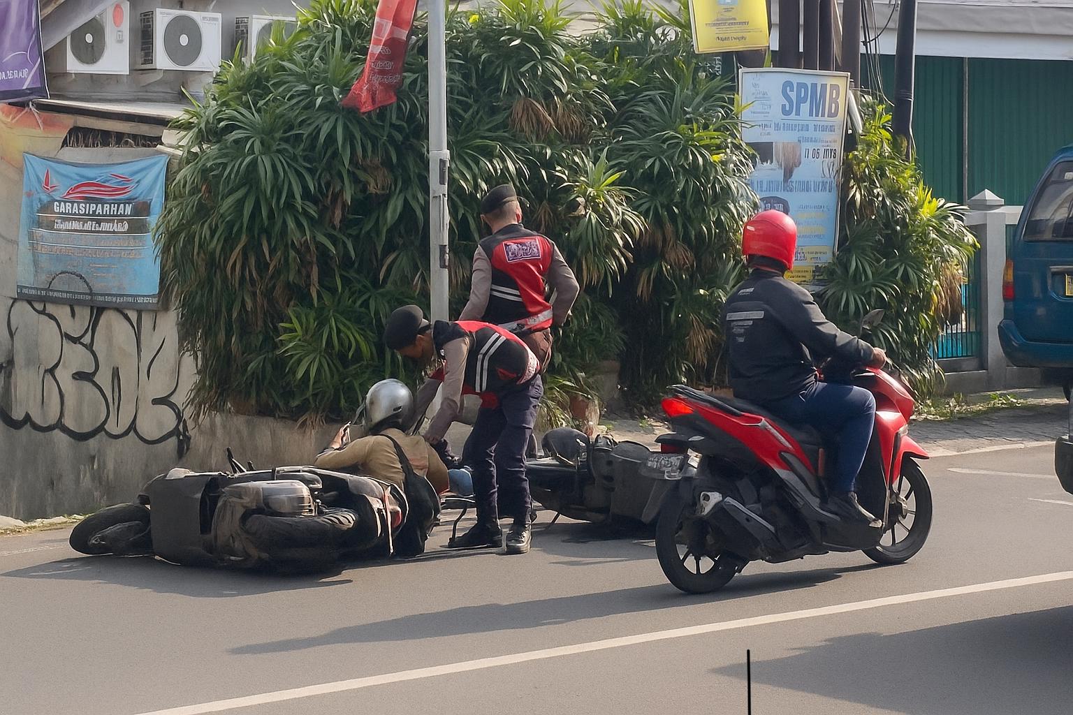 Respon Cepat Tolong Korban Laka Lantas, Personil Korsabhara Polri di Depok.