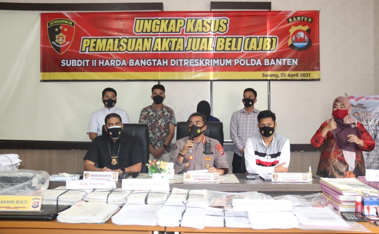 Kali ini Satgas Mafia Tanah Polda Banten mengungkap sebanyak 690 akta jual beli dan akta hibah palsu yang berada di Kecamatan Pabuaran, Kabupaten Serang.