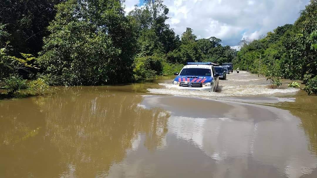 Akibat luapan DAS Katingan, akses jalan dari Kasongan menuju Tumbang Samba Kecamatan Katingan Tengah terganggu.