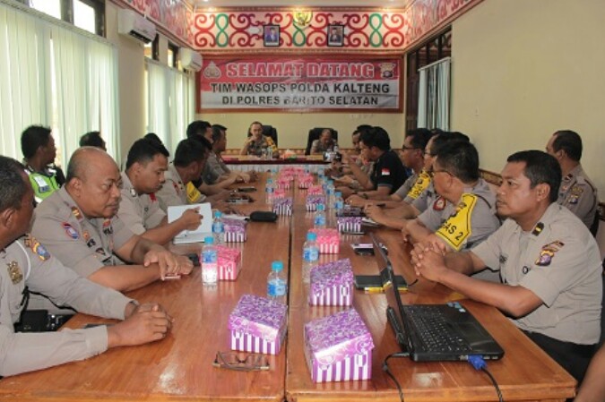 Kapolres Barito Selatan AKBP Devy Firmansyah, S.I.K., dalam sambutannya mengucapkan selamat datang kepada Katua Tim Wasops Kompol IGN Komang Sunarma beserta Robongan di Polres Barsel.