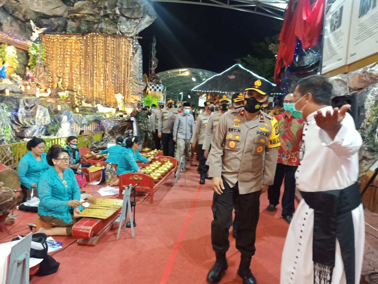 “”Kami dari Polri TNI melakukan pengamanan berjaga untuk menjamin keamanan dan kenyamanan umat kristiani saat misa natal dan perayaan natal 2020 ” Kata Ery