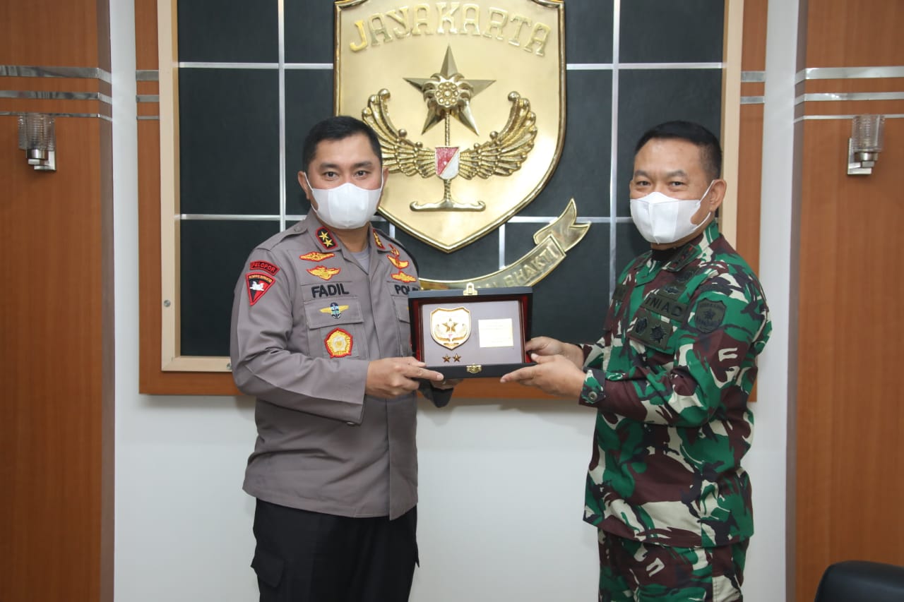 JAKARTA – Untuk semakin mempererat dan mewujudkan sinergitas TNI dan Polri, Kapolda Metro Jaya, Irjen Polisi Muhammad Fadil Imran M.Si mengunjungi Markas Kodam Jaya, Jalan Mayjen Sutoyo no.5, Kramatjati, Jakarta Timur, Senin (23/11/2020).