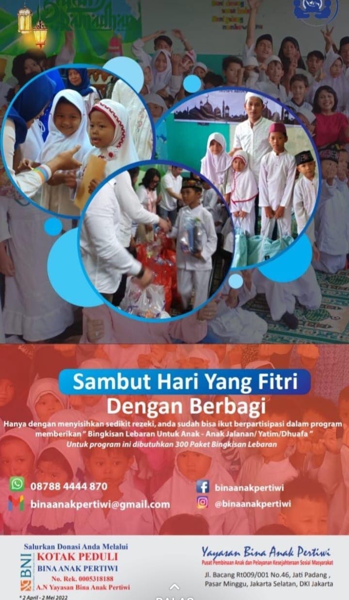 Mediapolisi.id, Jakarta – Meskipun di tengah situasi sulit, Yayasan Bina Anak Pertiwi (YBAP) selalu berusaha hadir untuk membayarkam tangung-jawab sosial pada ratusan anak-anak terlantar yang selama ini sudah jadi keluarga besar YBAP.